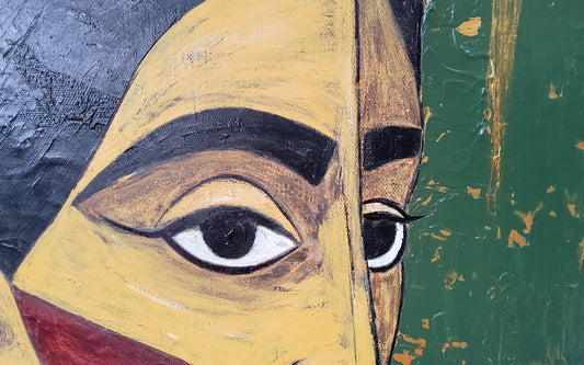 Autodidacte passionnée, elle développe un langage pictural singulier : une peinture architecturée, intuitive et sensuelle. Chaque toile est un fragment d'âme -une composition qui associe force géométrique et fragilité poétique.