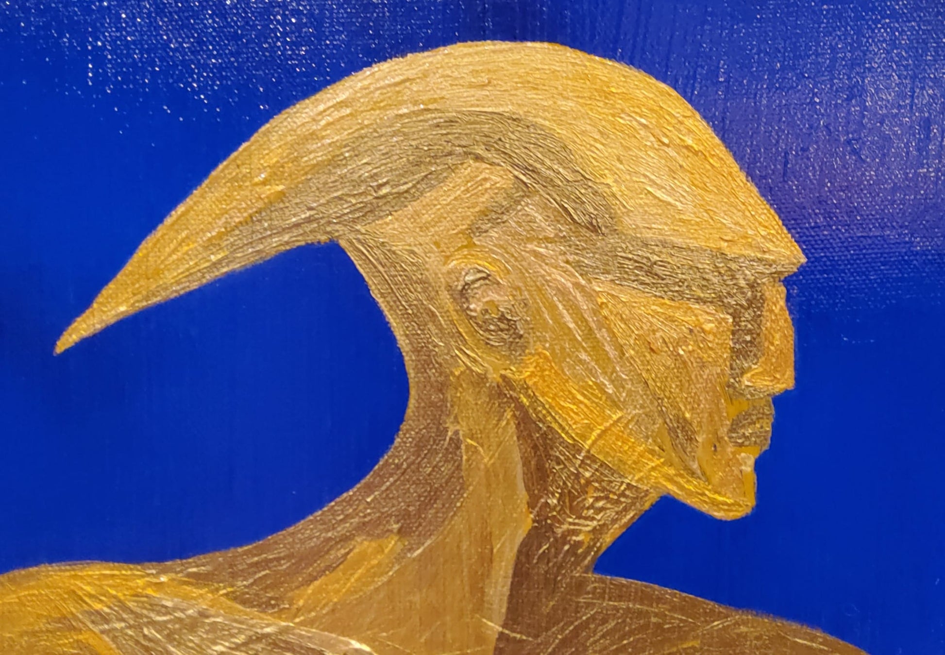 La figure dorée incarne cette seconde décisive : un corps tendu vers l'avant, propulsé par une énergie intérieure qui ne doute pas.