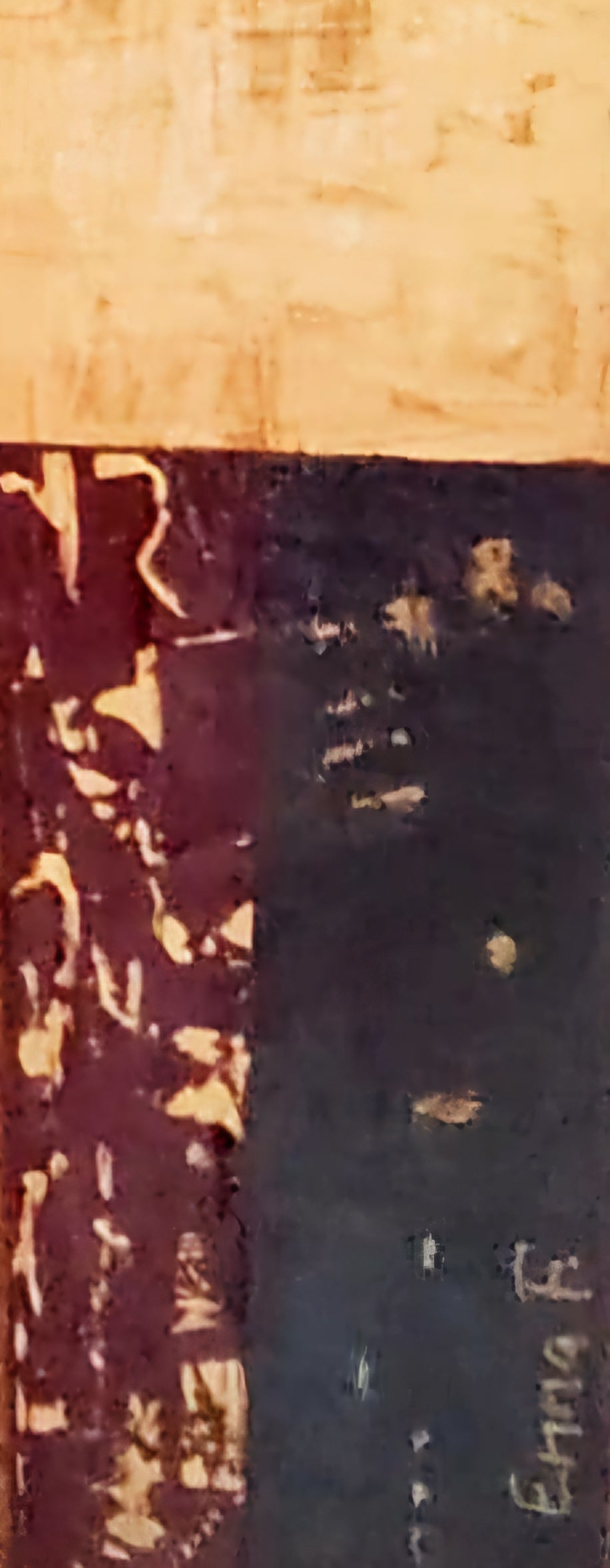 Emma F. utilise ici une construction cubiste contemporaine, mêlant textures épaisses, aplats dorés et lignes angulaires pour créer une présence mystérieuse et souveraine.
