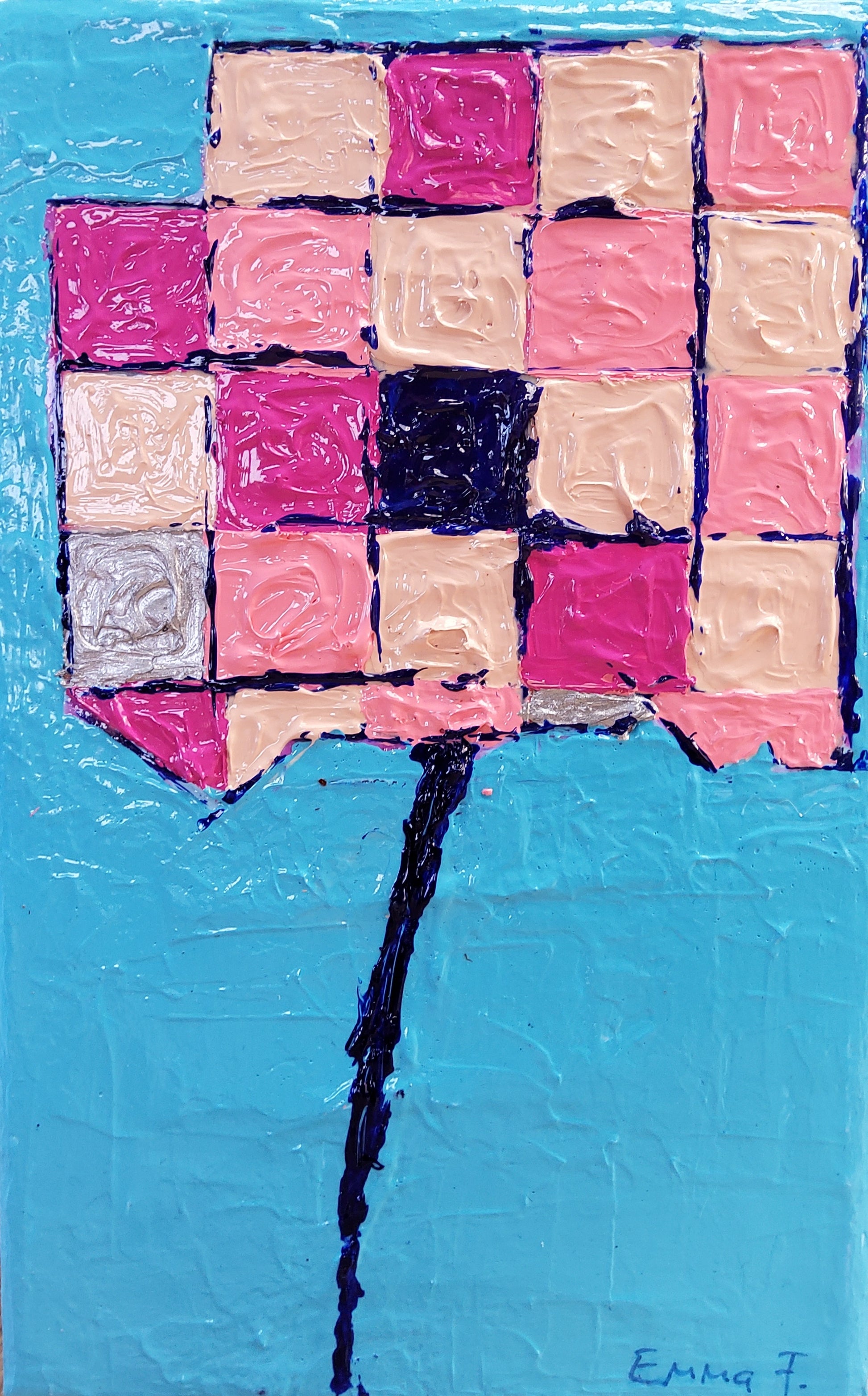 Entre rigueur et poésie "Damier d'Âme" transpose le coquelicot d'Emma F. dans un langage géométrique.